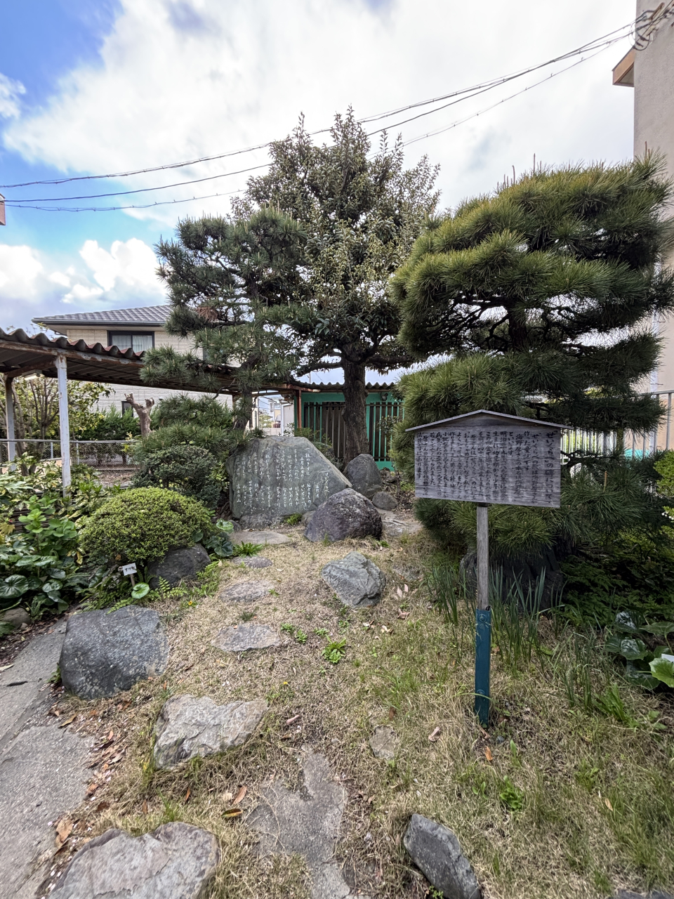 天下茶屋の向かい側の道を約70m進んだ所には「太宰治文学碑」が建っています。