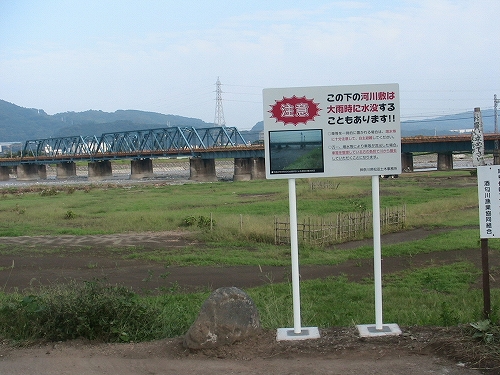 神奈川県開成町、酒匂川(さかわがわ)河川敷に建つ看板