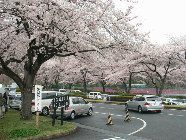 車で園内に入ると、広い車道の両側には雪崩にでも巻き込まれたような立派なソメイヨシノの大群。