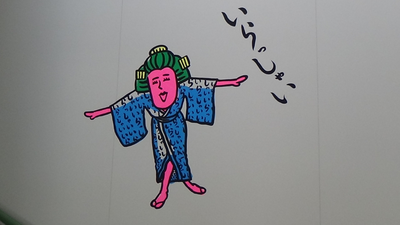 駅の階段を登り、屋根付きの横断歩道橋を利用して、向かい側にある 体験型フードパークKADODE OOIGAWAに行けます。階段室の壁にはこんな絵が・・・