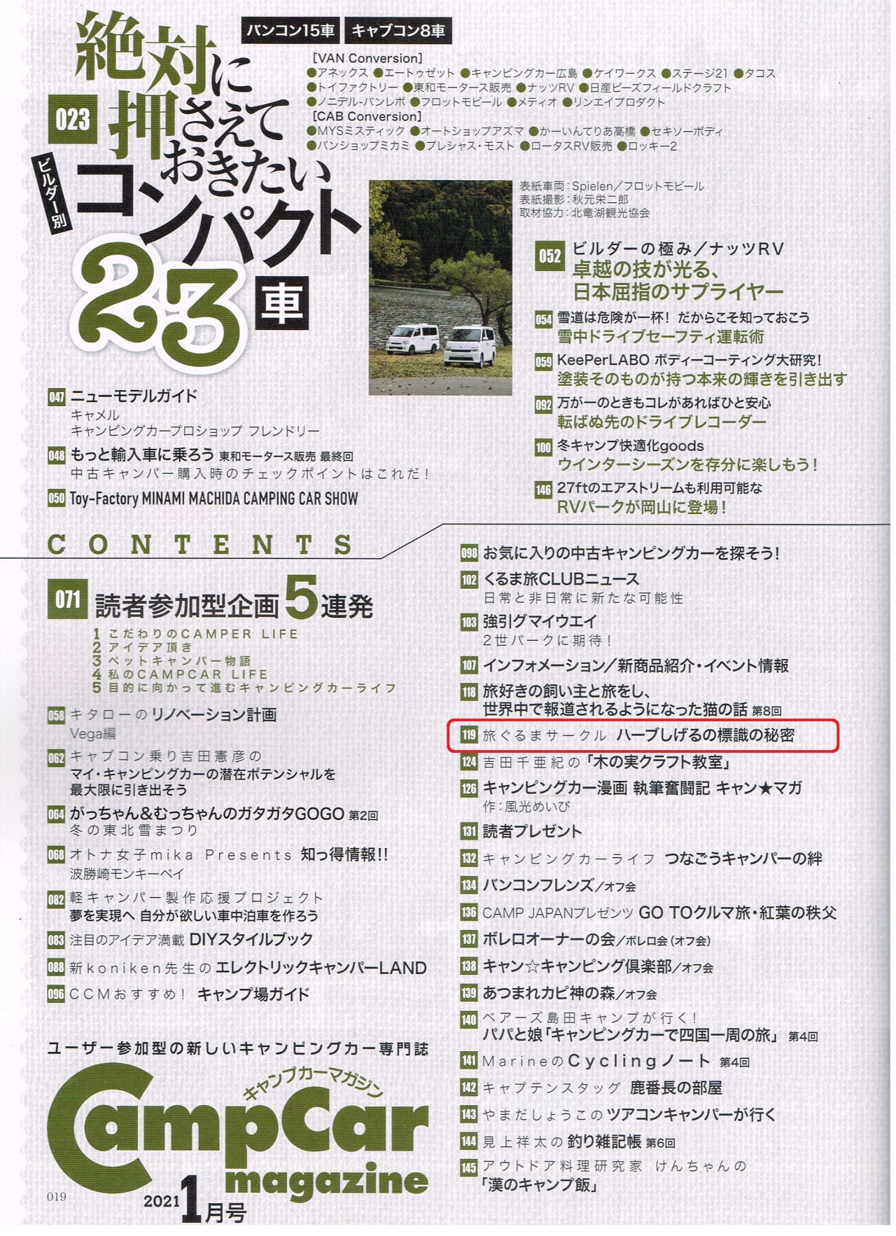 久しぶりに、またキャンプカーマガジンを取り上げます。このコロナ禍の中で、レジャーとしての移動手段がキャンピングカーの人気を押し上げているようです。確かに、電車やバスでは「三蜜」の要素があるのに対し、乗用車なら、家族での「三蜜」は問題ないですからね。そしてキャンピングカーなら宿泊先での「三蜜」もクリアできちゃいます。そんな訳で、キャンピングカーの人気はじわじわと上がっているようです。