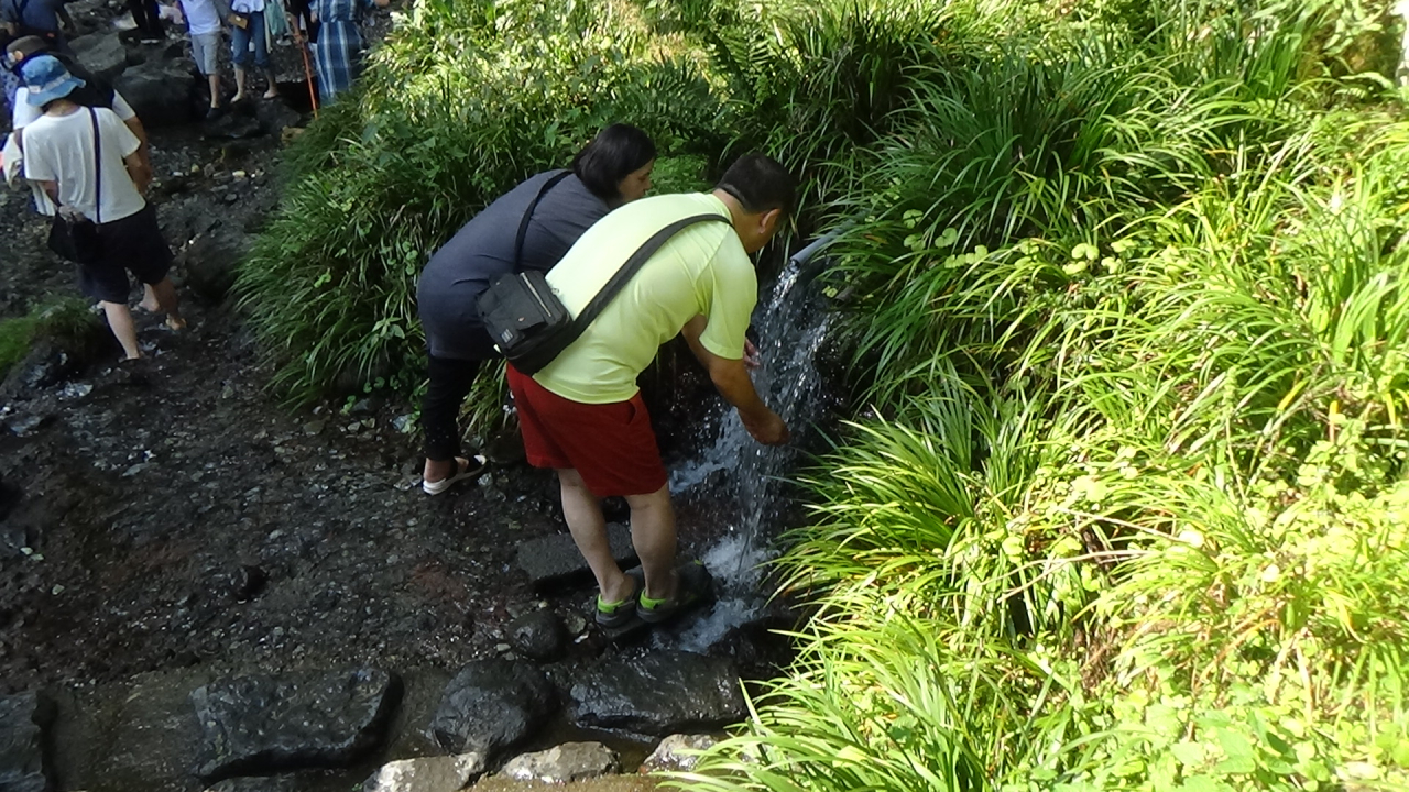 滝の少し手前に美味しそうな冷たい清水が、遊歩道脇からジャンジャン出ています。この水をポリタンクやペットボトルに詰めて持ち帰る人が多いです。