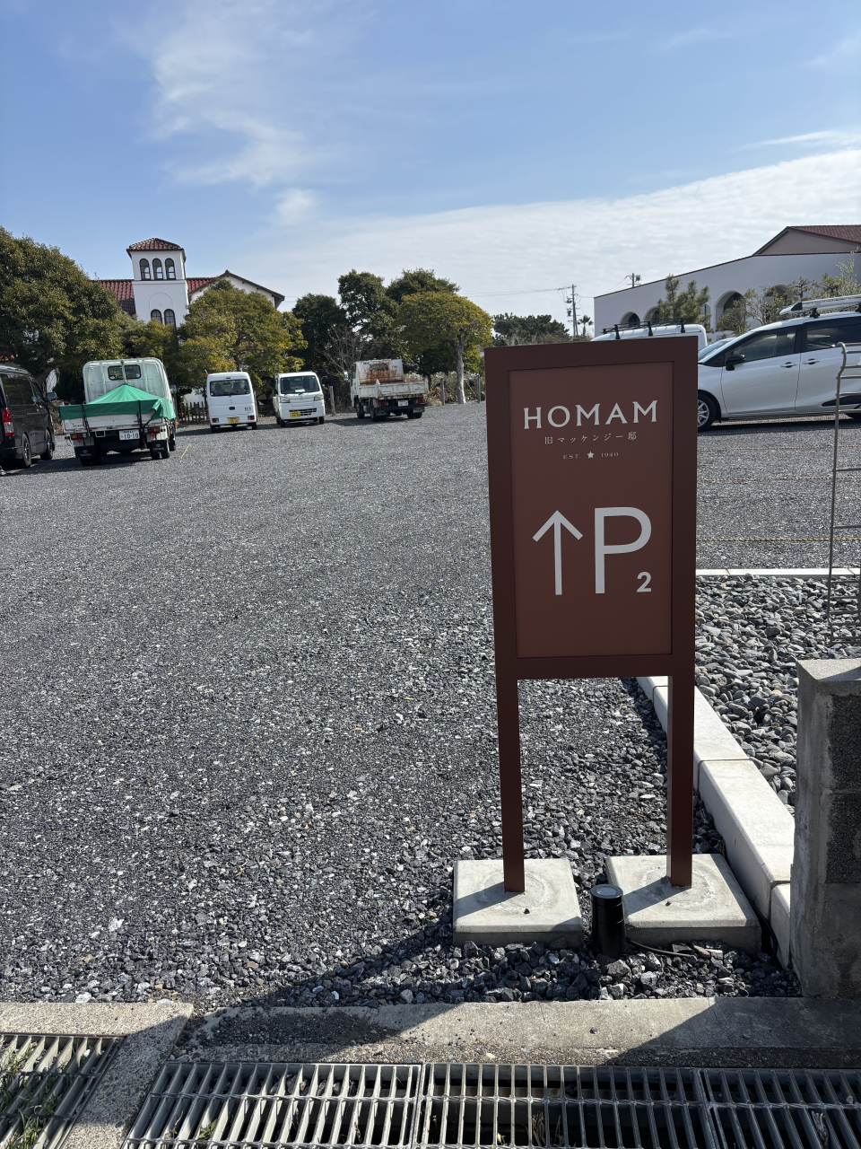以前にあった旧マッケンジー邸の駐車場が結婚式場HOMAMの第二駐車場になりました