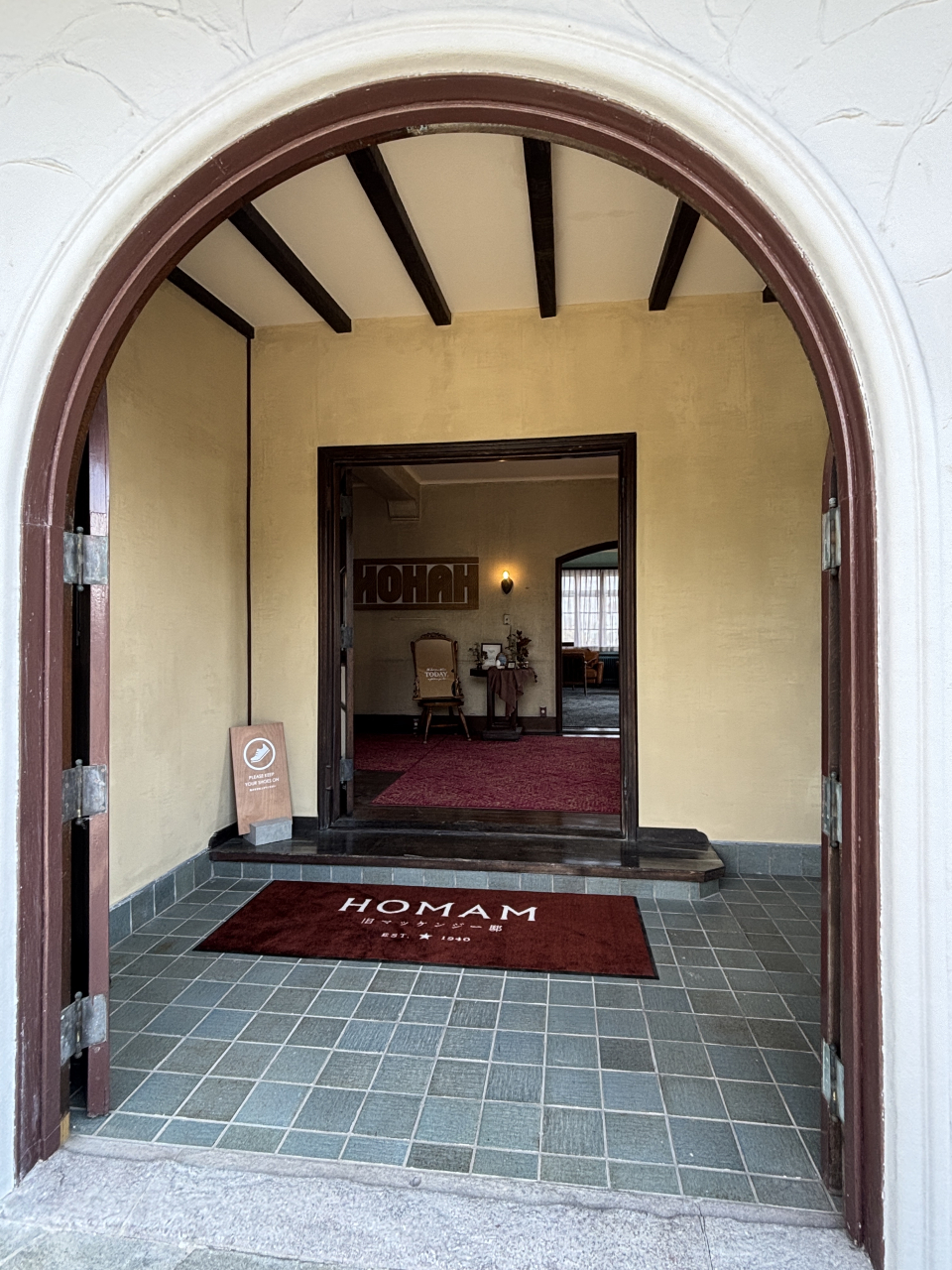 基本的には、この邸宅の南側の海に面した敷地に某社が結婚式場HOMAMUを造り、その利用者の控室・休憩室としてこのマッケンジー邸を利用してもらうために、結婚式がある時にはマッケンジー邸は貸し切りになり、一般入場は規制されるとのことなので、週末は要確認です。