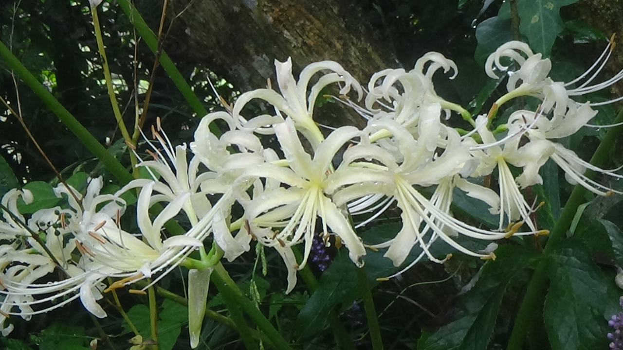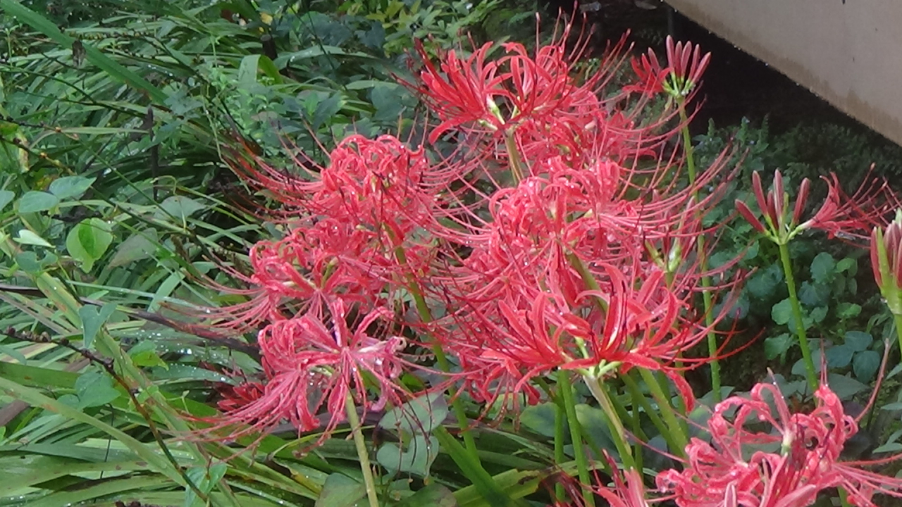 そして、その秋のお彼岸に咲く華やかな花が『彼岸花』です。この花はある日突然、地面から沸いて出てきたようにパーッとと花を付けます。代表的なものはこの赤い花です。